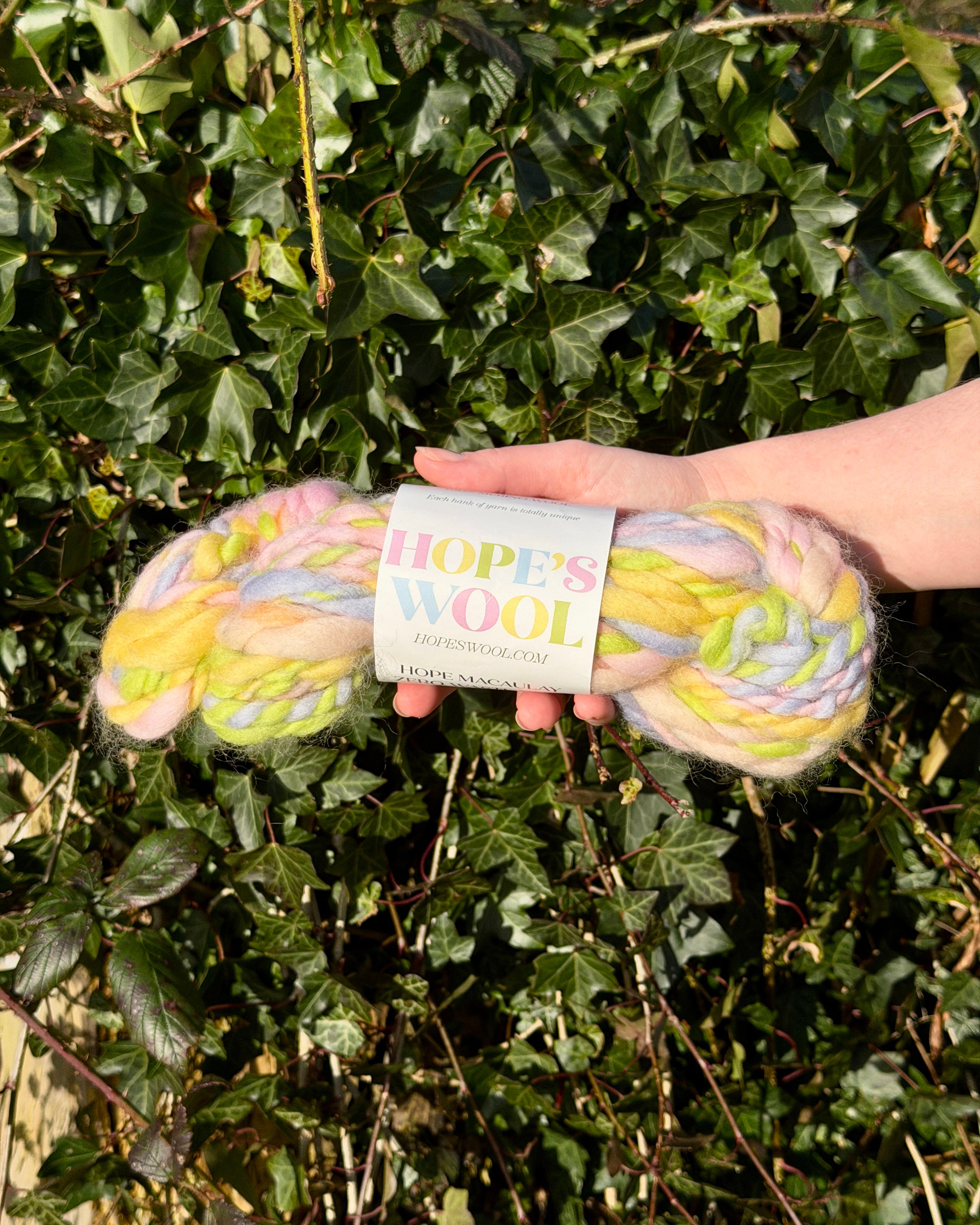The chunky super soft yarn has been handspun locally in Northern Ireland from high quality Hope Macaulay merino wool off cuts.