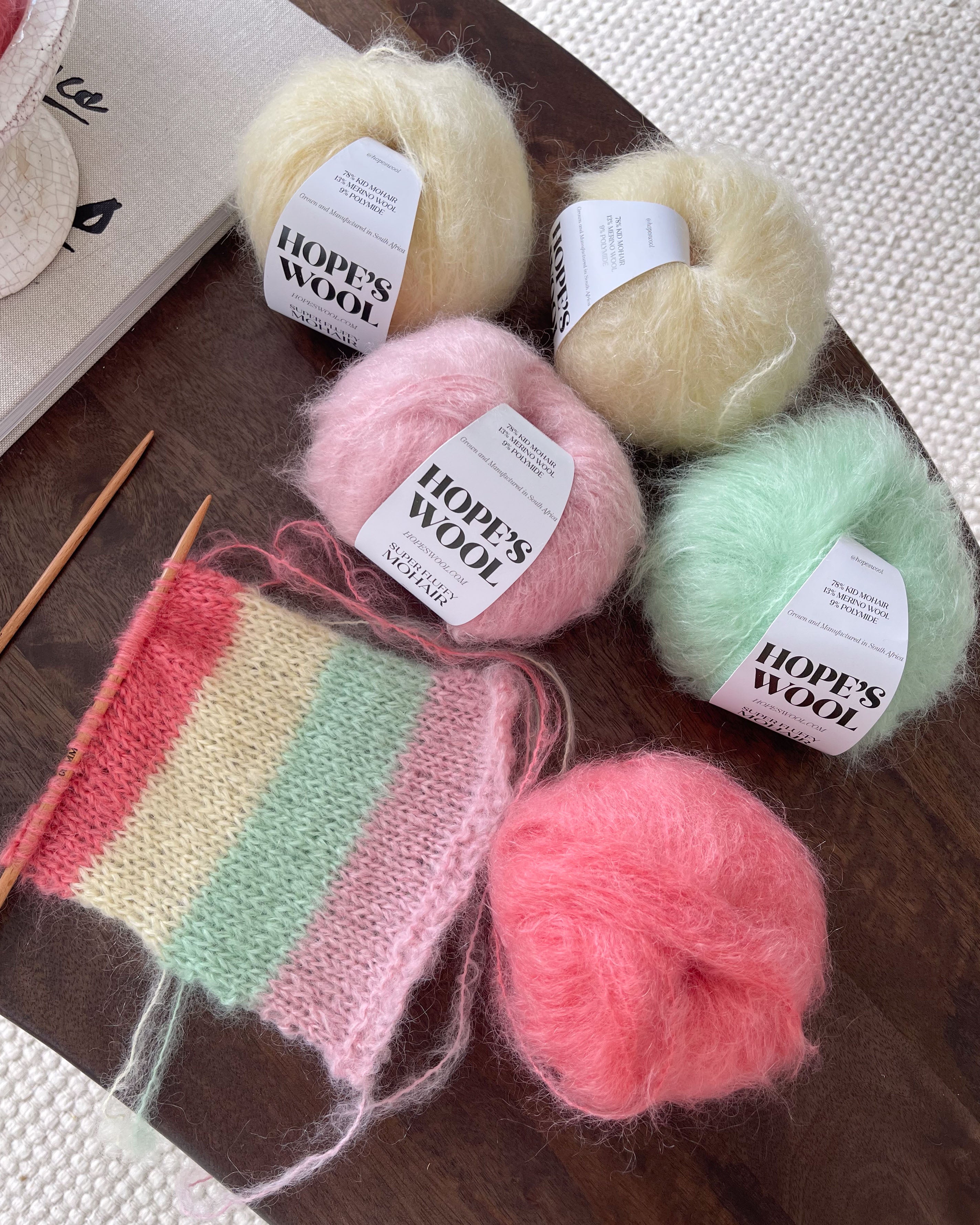 高品質のキッドモヘアを使用したこの糸は、編み物、かぎ針編み、織り物に最適です。キッドモヘア78%、メリノウール13%、ポリアミド9%で作られており、ミュールジングされていない羊の群れから責任を持って調達されています。この糸はまた、 RMS認証およびOEKO TEX 100認証を取得しています。