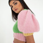 ホープ・マコーレーのスパークルパフスリーブチャンキーニットトップスの編み図