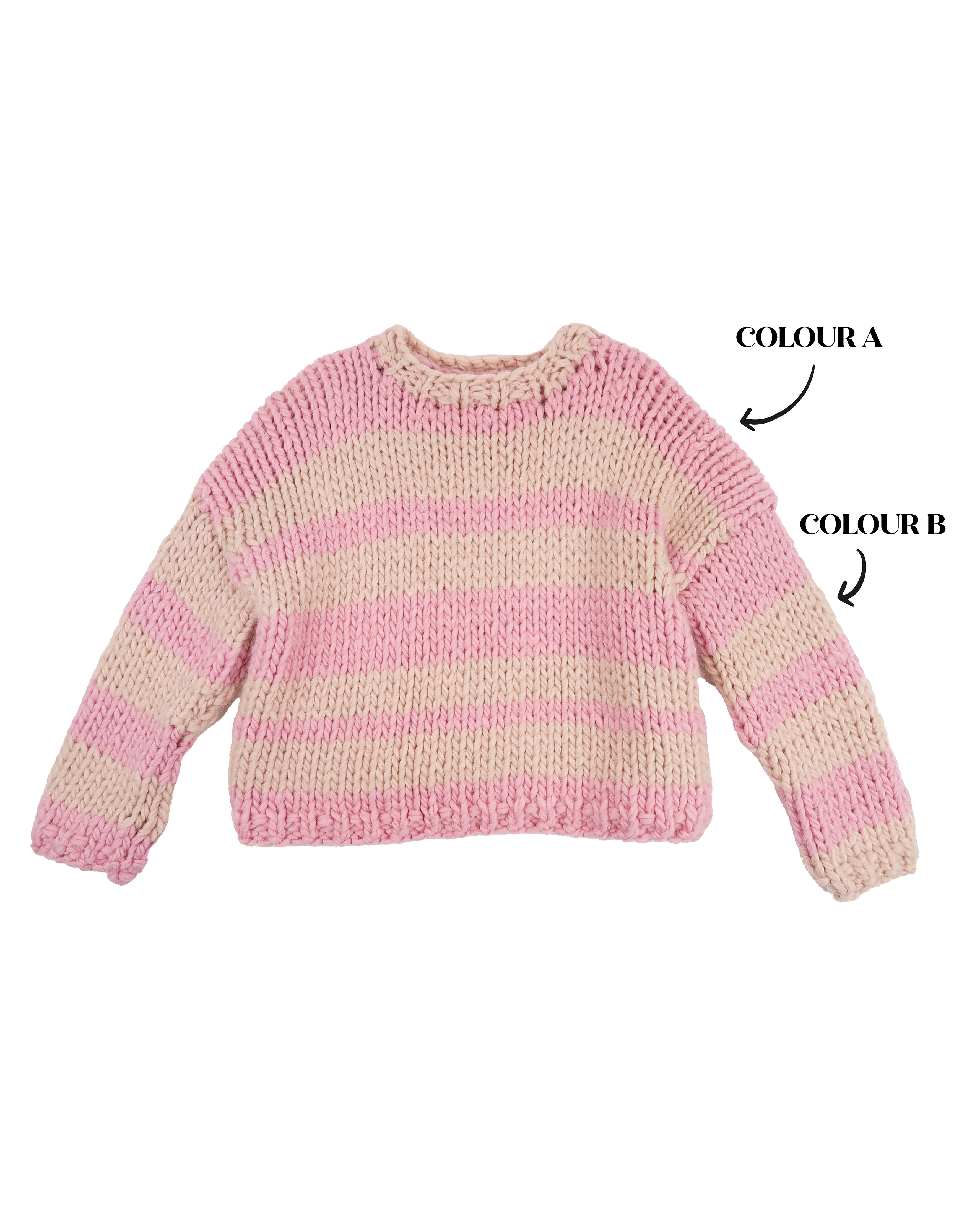 Every piece at Hope Macaulay is handmade by our small team of knitters around Northern Ireland, but now you can also join our knitting team and knit yourself your very own special Hope Macaulay Super Chunky Knit Stripe Sweater! Our Super Chunky Stripe Sweater pattern is perfectly suited for beginners or experienced knitters.