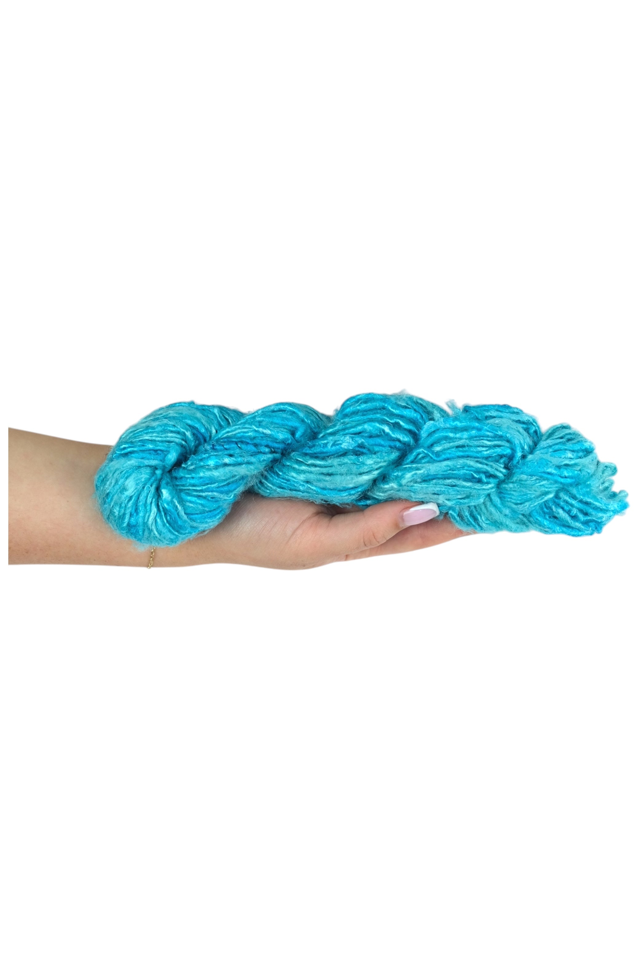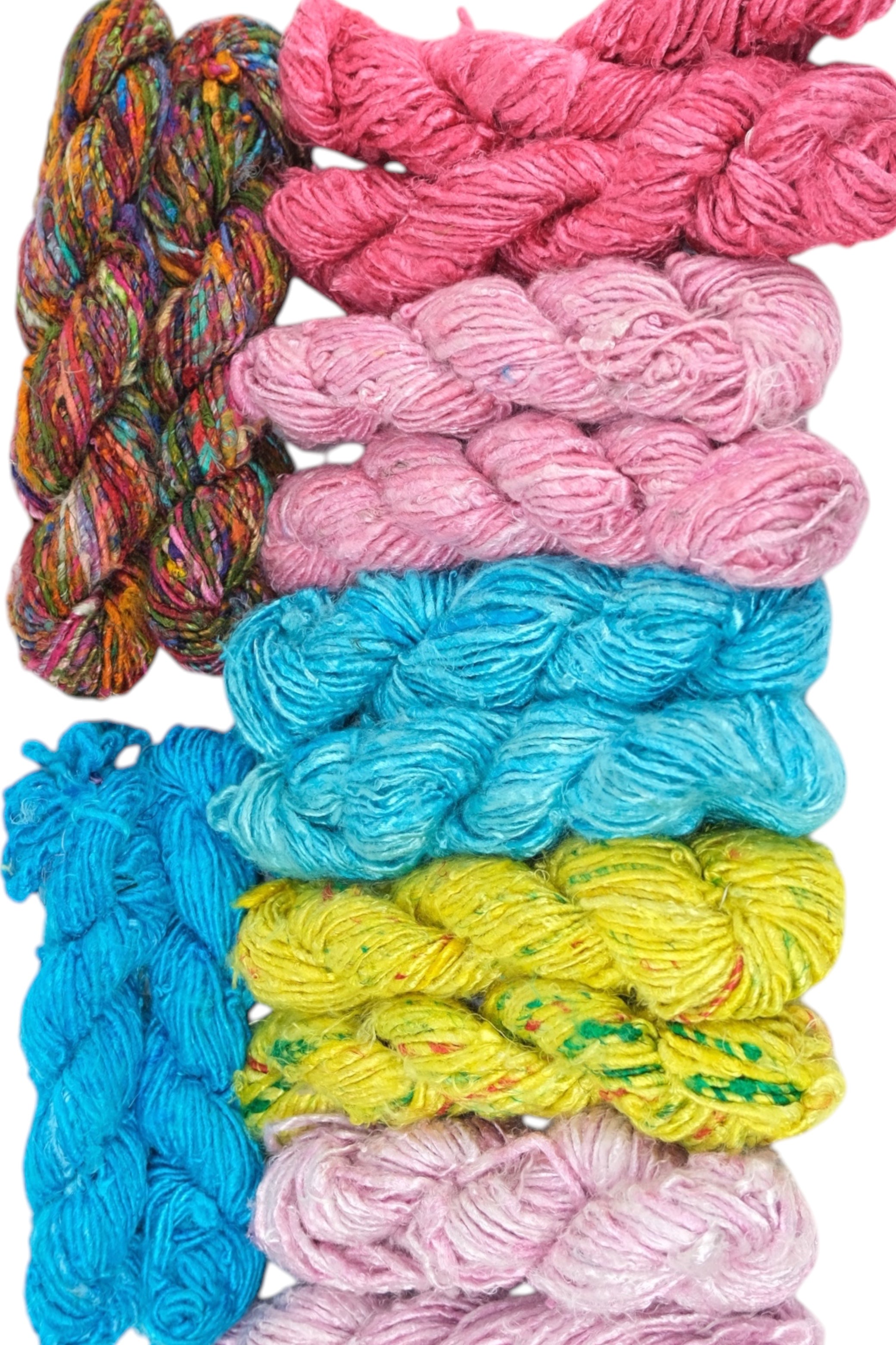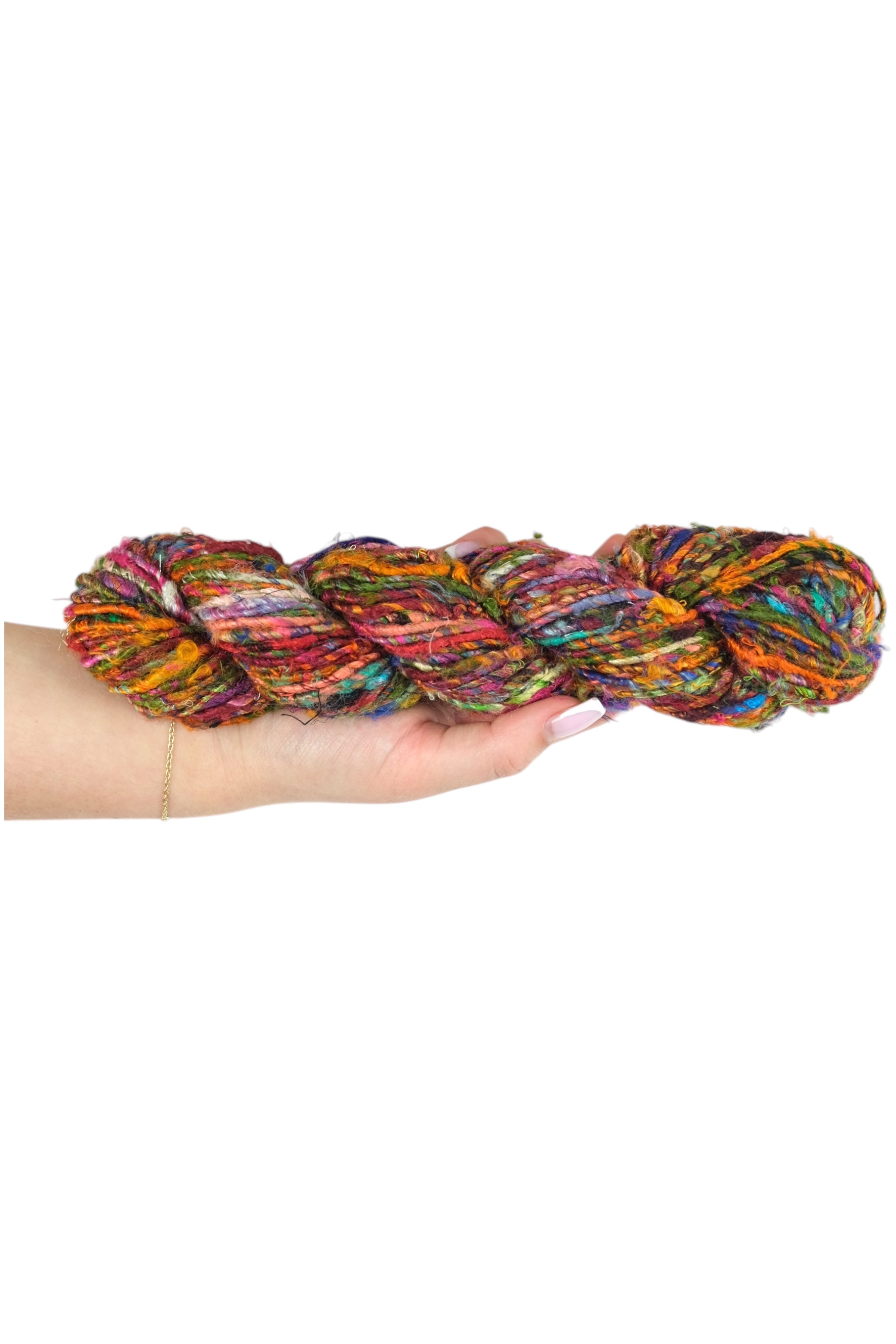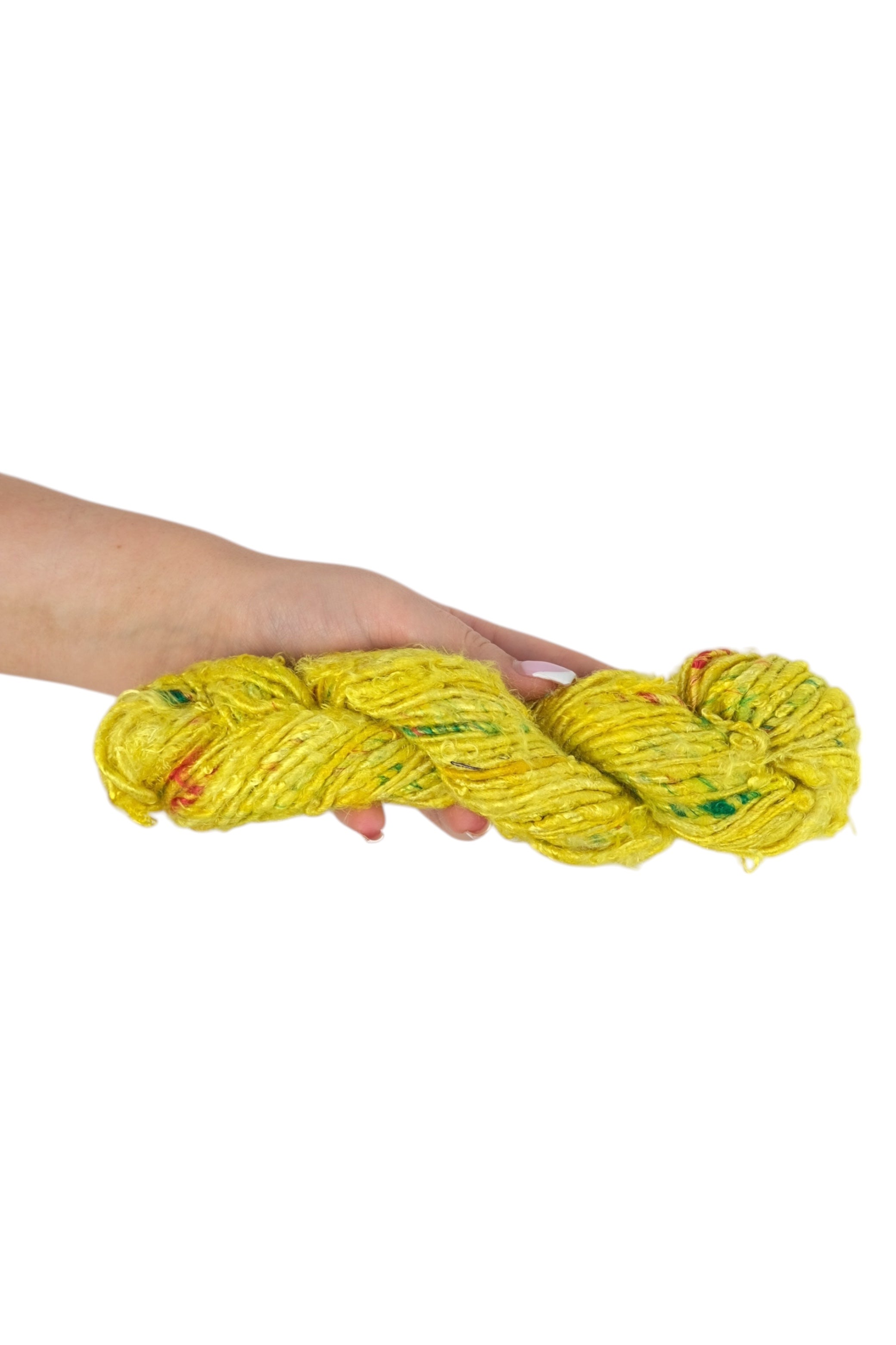Our luxurious, vegan-friendly, and beautifully silky banana yarn is made from leftover banana plant fibres in India, which would otherwise have gone to waste. The yarn is hand-spun by groups of women in rural India using traditional techniques. It’s soft, luxurious, and perfect for all kinds of creative projects. With its heavy drape and no stretch, it’s ideal for knitting or crocheting hats, bags, and so much more.