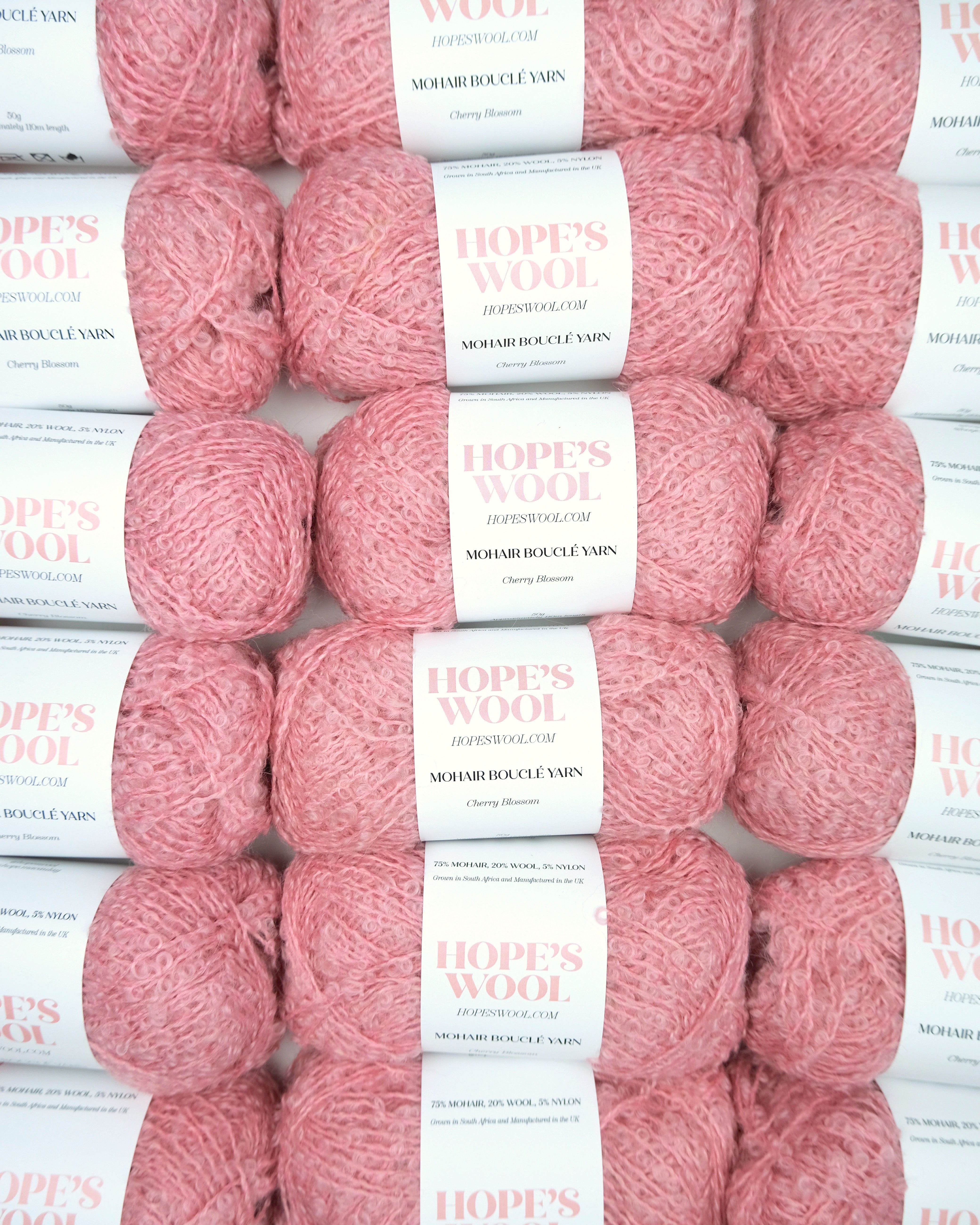 Introducing our limited drop of Mohair Bouclé Yarn in Cherry Blossom. This unique and luxurious yarn is ideal for all your knitting, crocheting, and weaving needs.