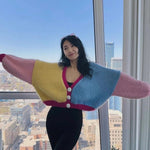 Colourful knitted cardigan with rhinestone buttons on the front