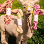 We are proud to present our most Irish and bespoke creations yet – a limited-edition collection of Irish Alpaca Yarn. The colour Causeway, inspired by the striking basalt columns of the Giant’s Causeway, is a chunky two-colour twist of baby pink and citrus green.