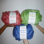 鮮やかな色合いのHope Macaulay Colossal Wool(ホープ・マコーレー・コロッサル・ウール)のコースタルブルーは、クラフト、編み物、フェルト、紡ぎ、織りなど、あらゆる創作活動に最適です。この極厚ウールは、再生可能で生分解性の天然繊維、コリデールウール100%で作られています。