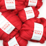 鮮やかなチェリーカラーのHope Macaulay Colossal Woolは、クラフト、編み物、紡ぎ、フェルト、紡ぎ、織りなど、あなたの創造力が解き放つあらゆる用途に最適です。この極厚ウールは、再生可能で生分解性の天然繊維であるコリデールウール100%で作られています。