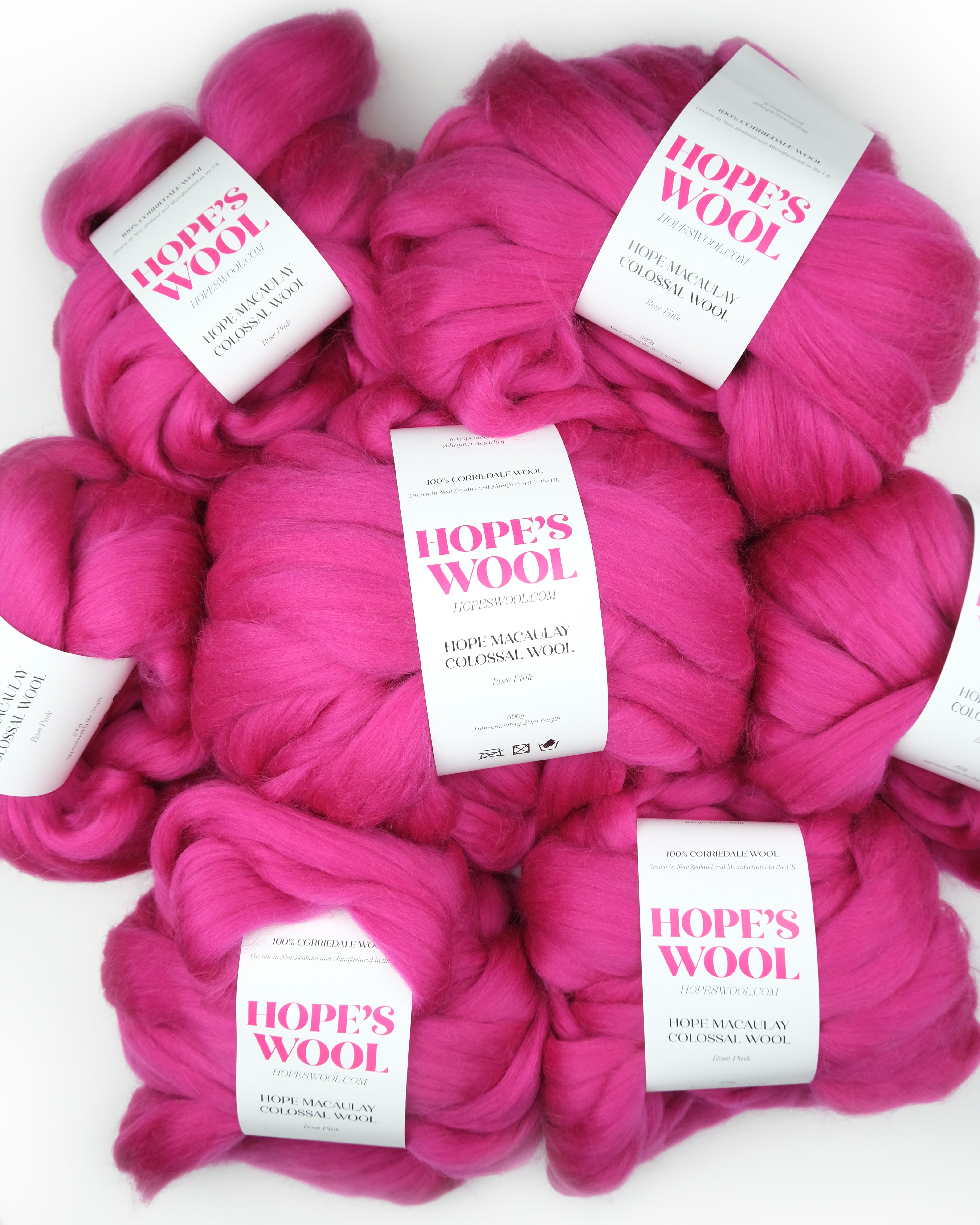 鮮やかなローズピンクのHope Macaulay Colossal Woolは、クラフト、編み物、紡ぎ、フェルト、紡ぎ、織りなど、あなたの創造力が解き放つあらゆる用途に最適です。この極厚ウールは、再生可能で生分解性の天然繊維であるコリデールウール100%で作られています。