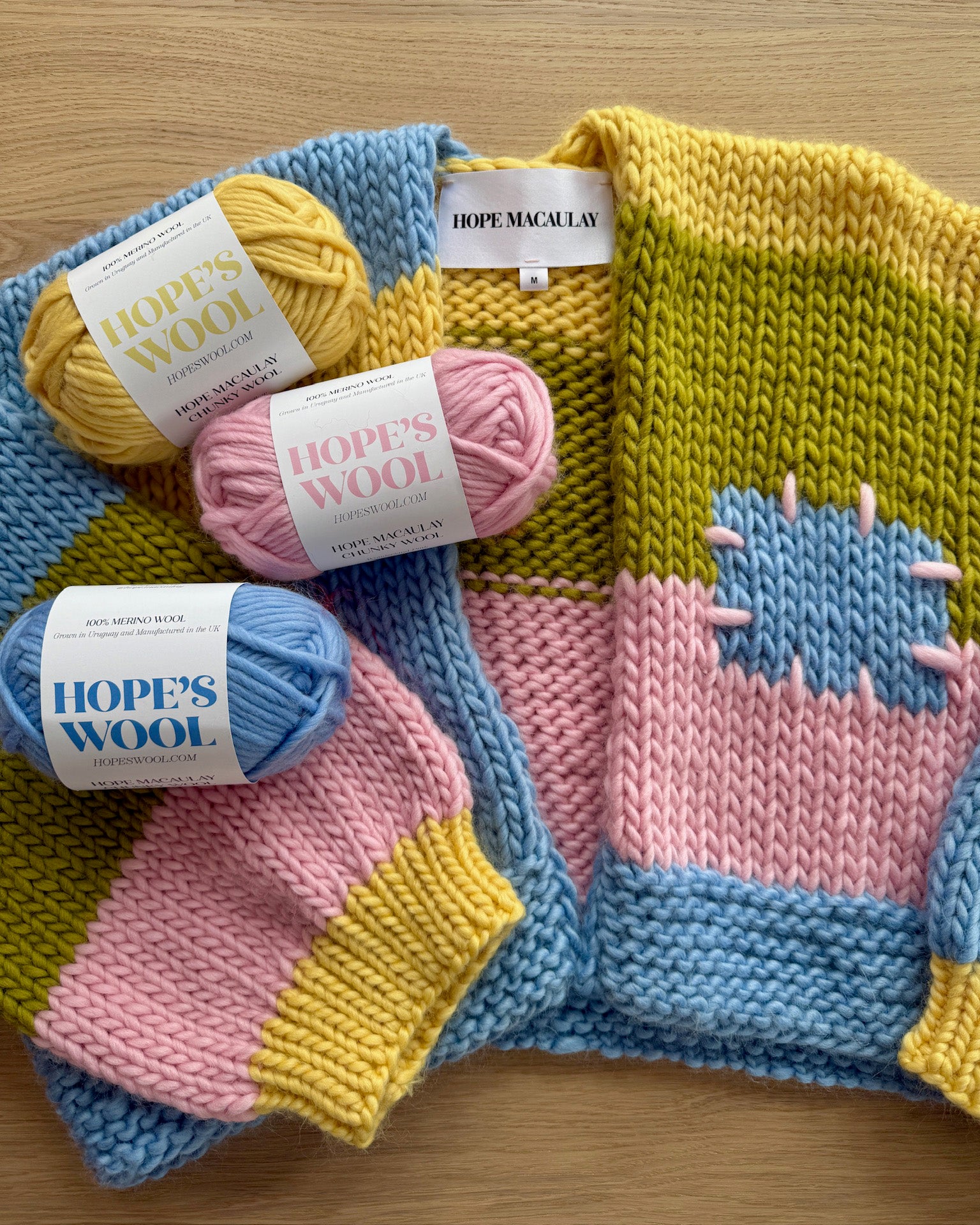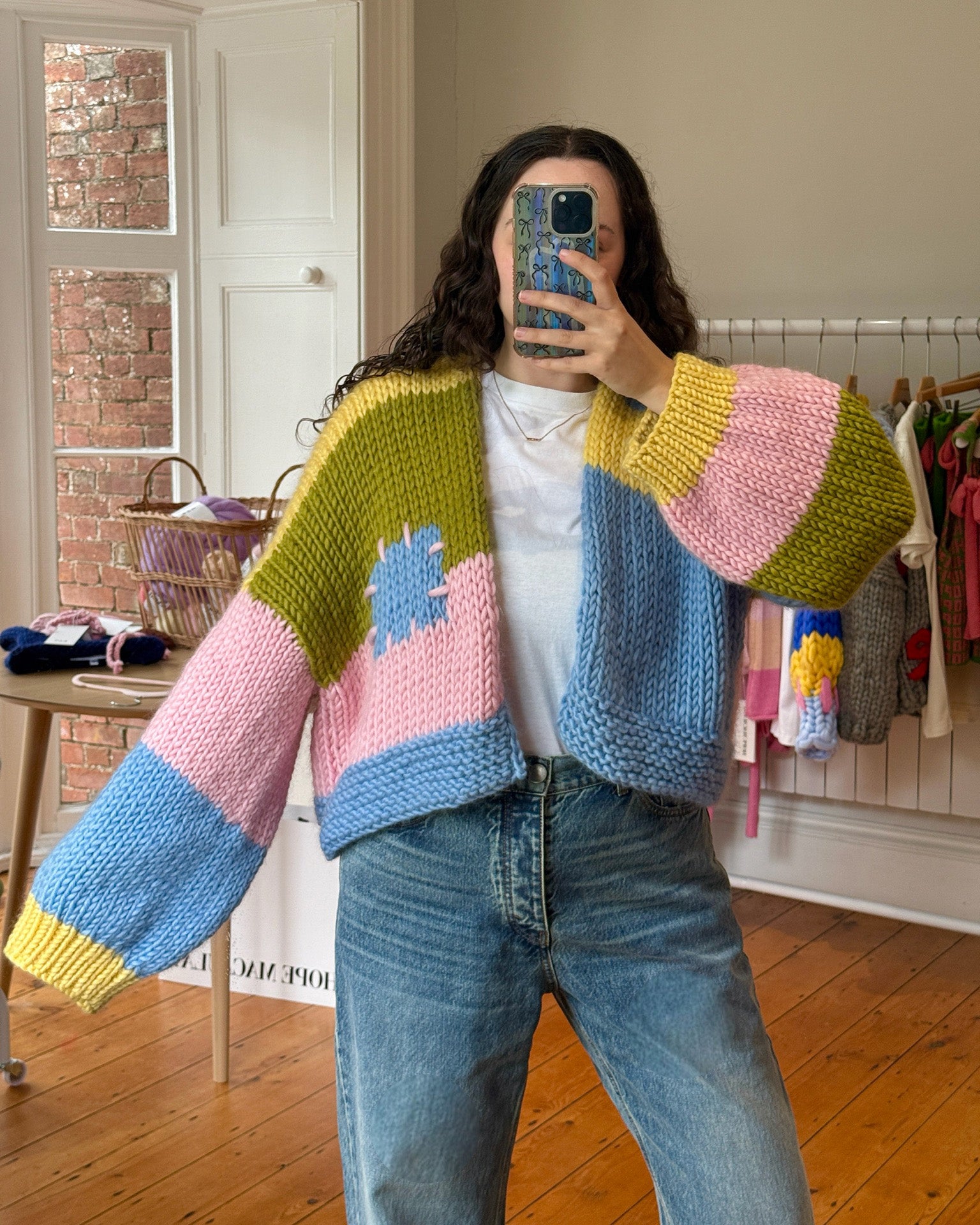 Every piece at Hope Macaulay is handmade by our small team of knitters around Northern Ireland, but now you can also join our knitting team and knit yourself your very own special Hope Macaulay Whimsy Patchwork Cardigan! Our Whimsy Patchwork Cardigan kit is perfectly suited for beginners or experienced knitters.