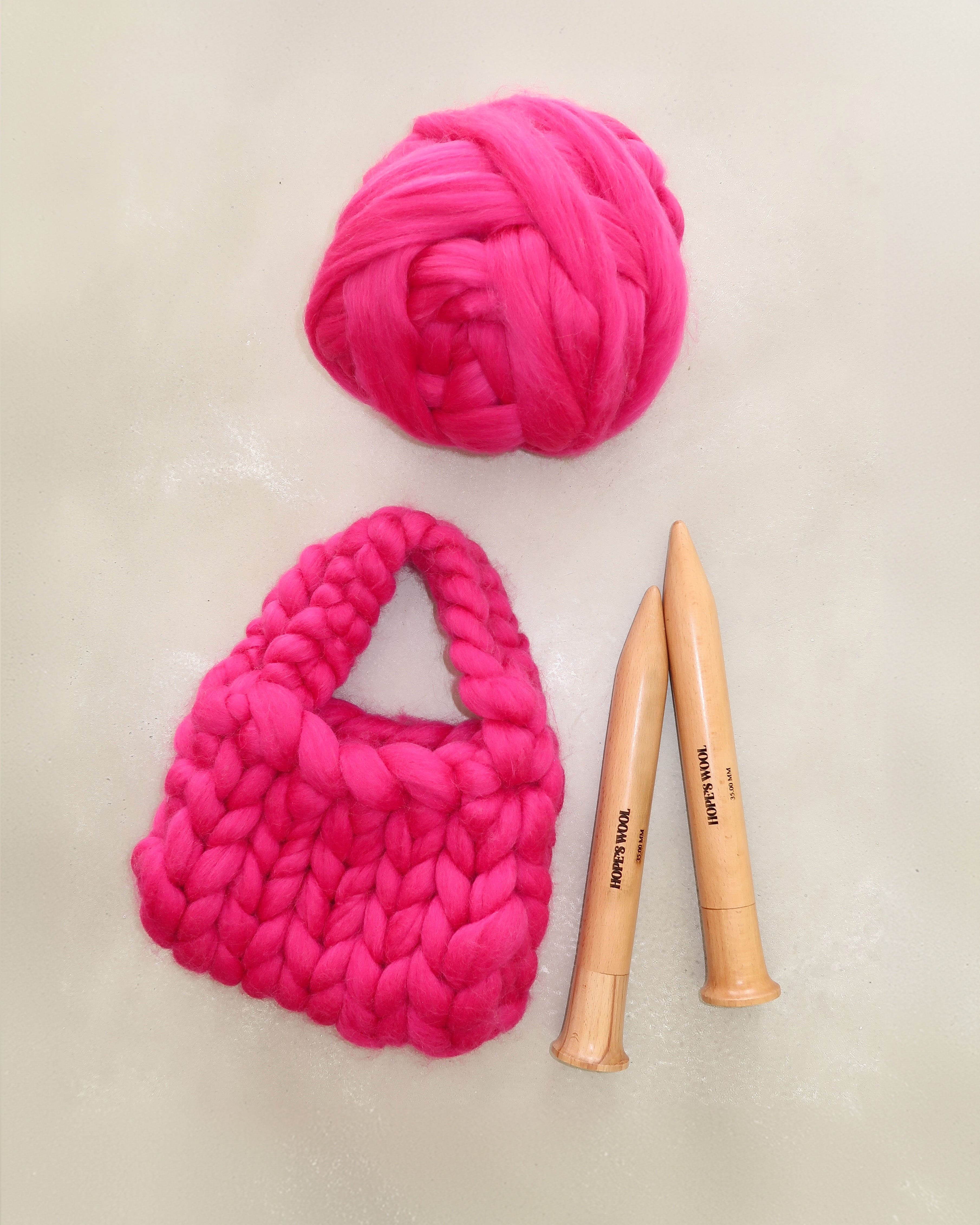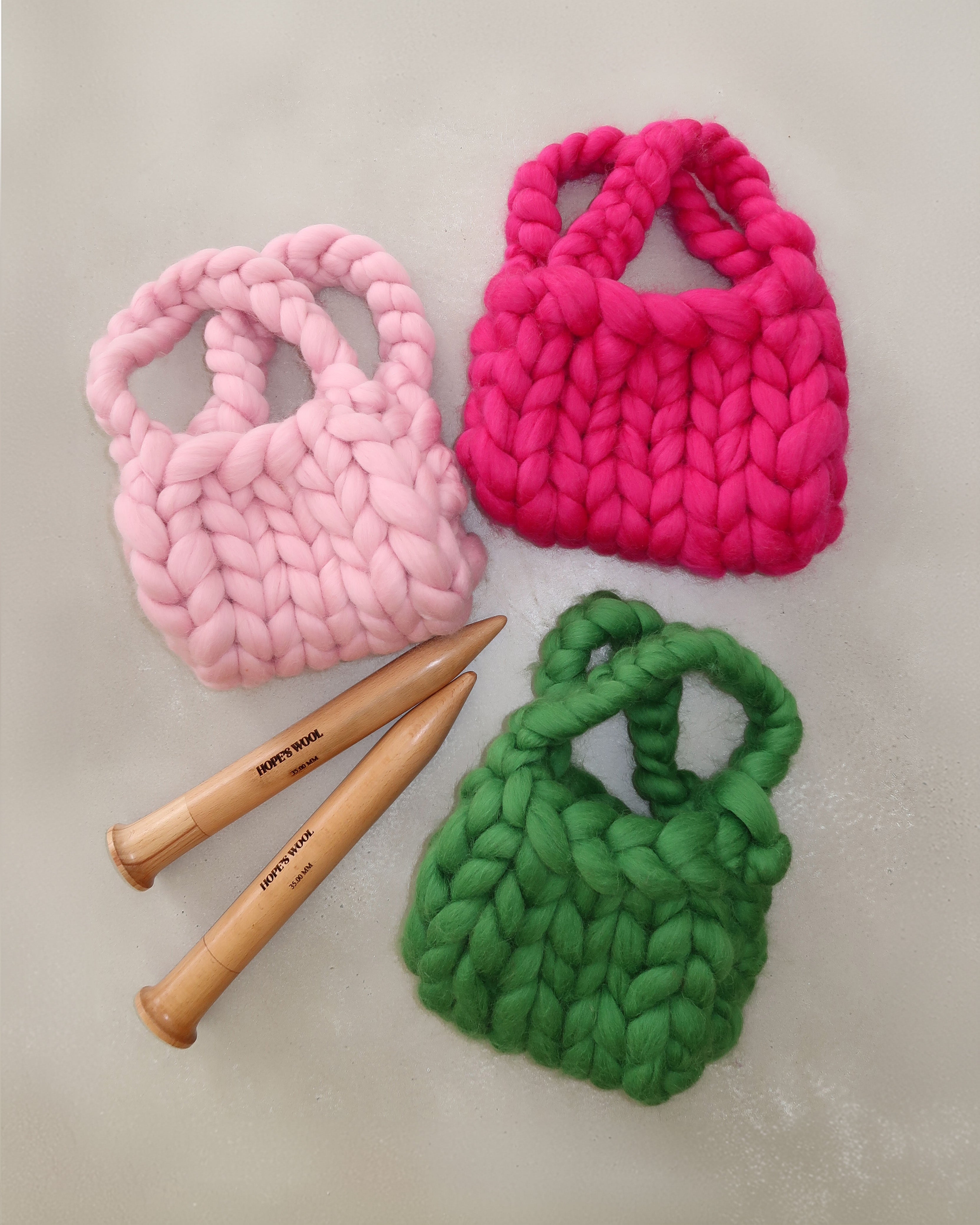 当社の Colossal Knit Mini Bag 編み物キットは、初心者にも経験豊富な編み物愛好家にも最適です。