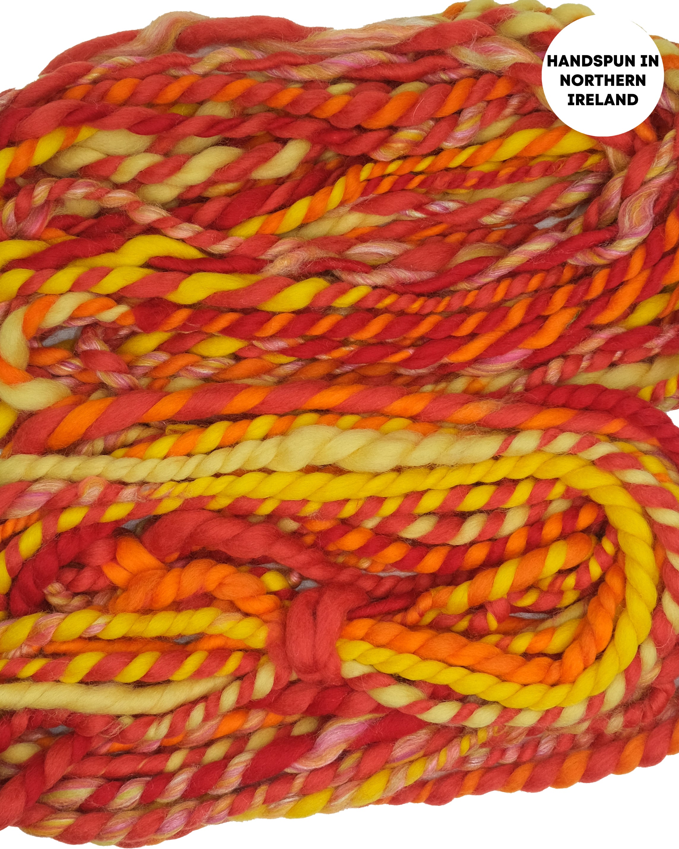 The chunky super soft yarn has been handspun locally in Northern Ireland from high quality Hope Macaulay tussah silk and merino wool off cuts.